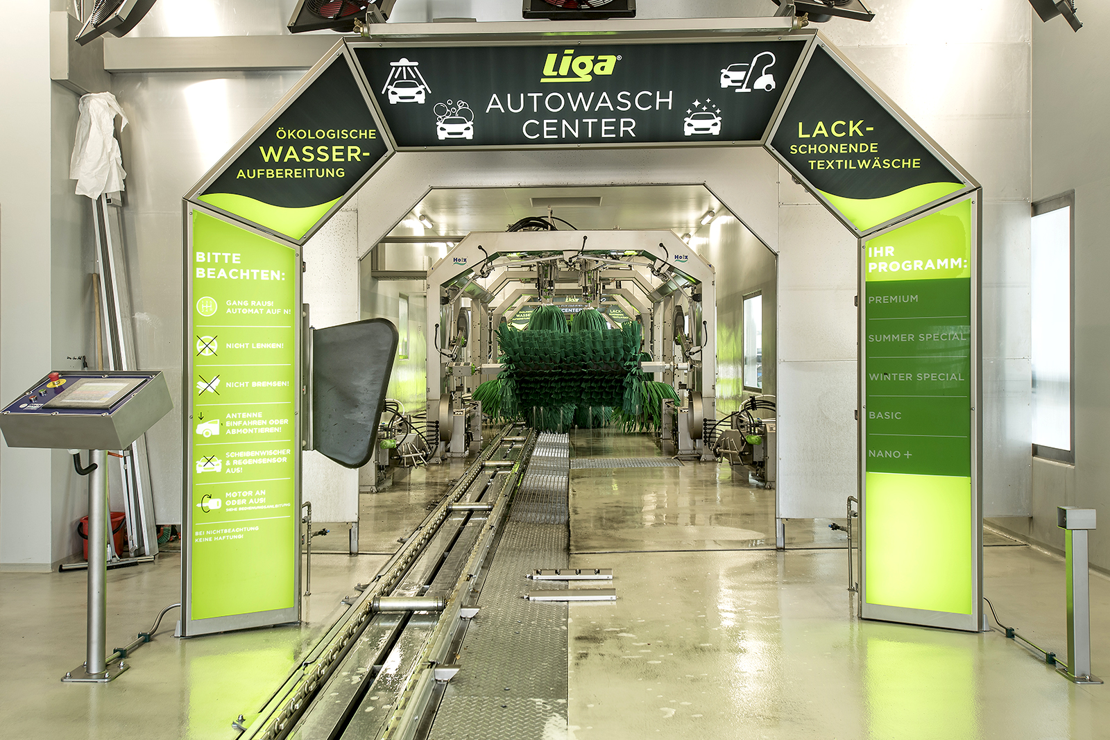 Unsere neueste Waschtechnologie bietet Ihnen eine noch schnellere und schonende Reinigung Ihres Fahrzeugs. Im Waschprozess werden 7-9 Fahrzeuge gleichzeitig bedient, was zu kurzen Wartezeiten führt. Bis zu 80 Fahrzeuge können pro Stunde professionell gereinigt werden.